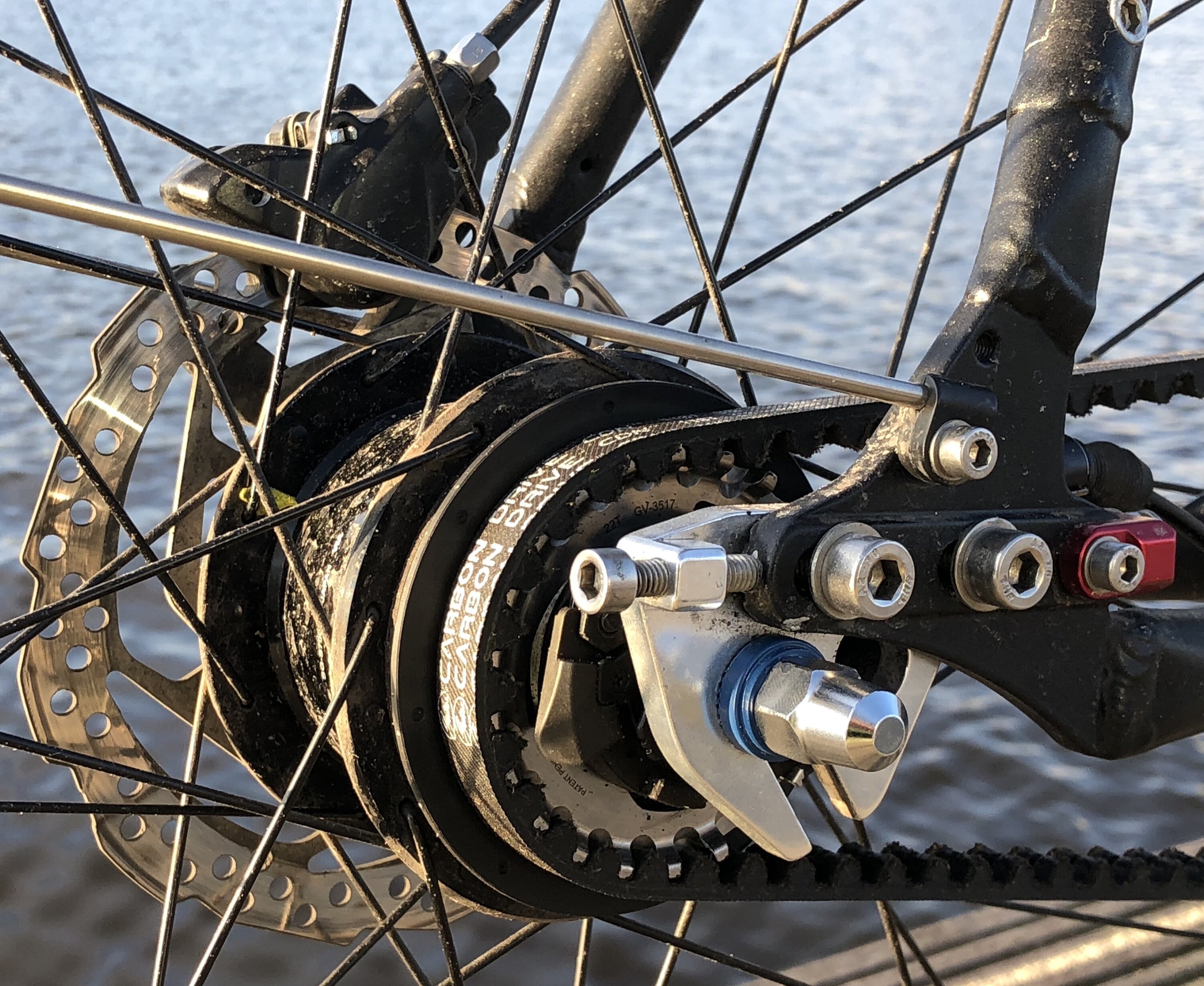 - Gruppe: Shimano Alfine-8 + Gates CDN Belt Drive + Shimano hydraulische Scheibenbremsen