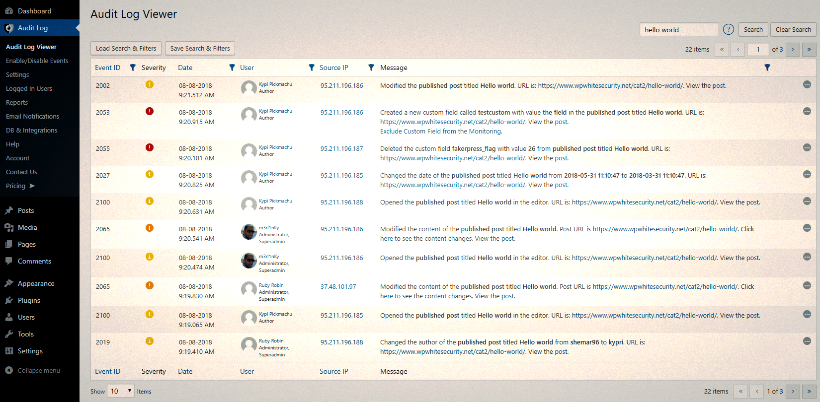 Überprüfen Sie Ihre eigene Website regelmäßig - oder beauftragen Sie jemanden damit. Mit einem Plugin wie WP Security Audit Log können Sie Angriffe und verdächtiges Verhalten frühzeitig erkennen. Erstellen Sie Backups Ihrer Website, damit Sie im Falle einer Cyber-Katastrophe wiederherstellen können. Unfälle passieren den Besten von uns, erstellen Sie ein Backup Ihrer Website, um zu verhindern, dass Ihre Arbeit vollständig verloren geht. Lesen Sie diesen blog post to learn about different ways to backup your WordPress website.