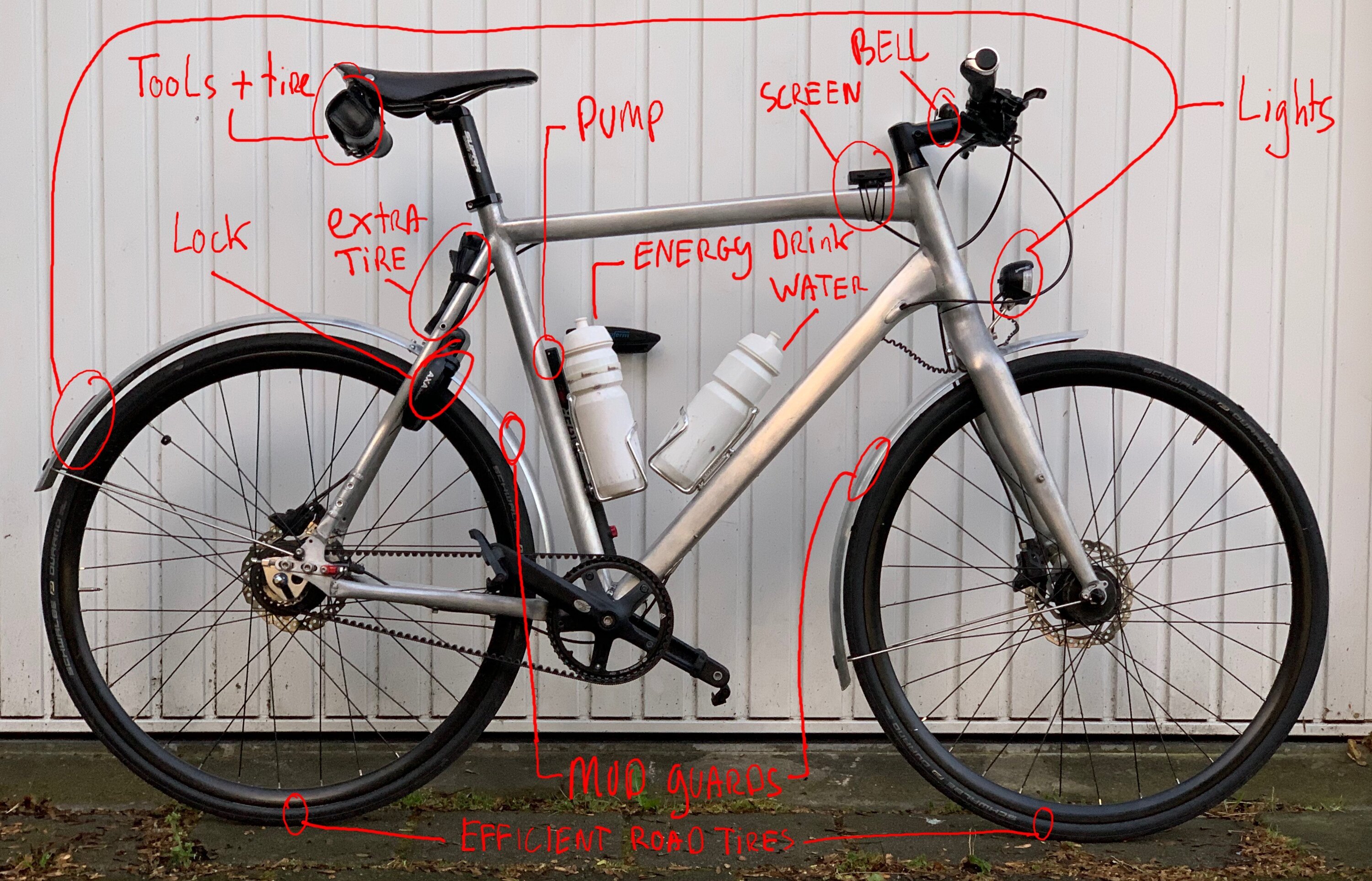 Ich kenne mein Fahrrad sehr gut, da es mein_Alltagsfahrrad ist. Für diese lange Strecke habe ich mein Fahrrad mit einigen zusätzlichen Gegenständen vorbereitet: