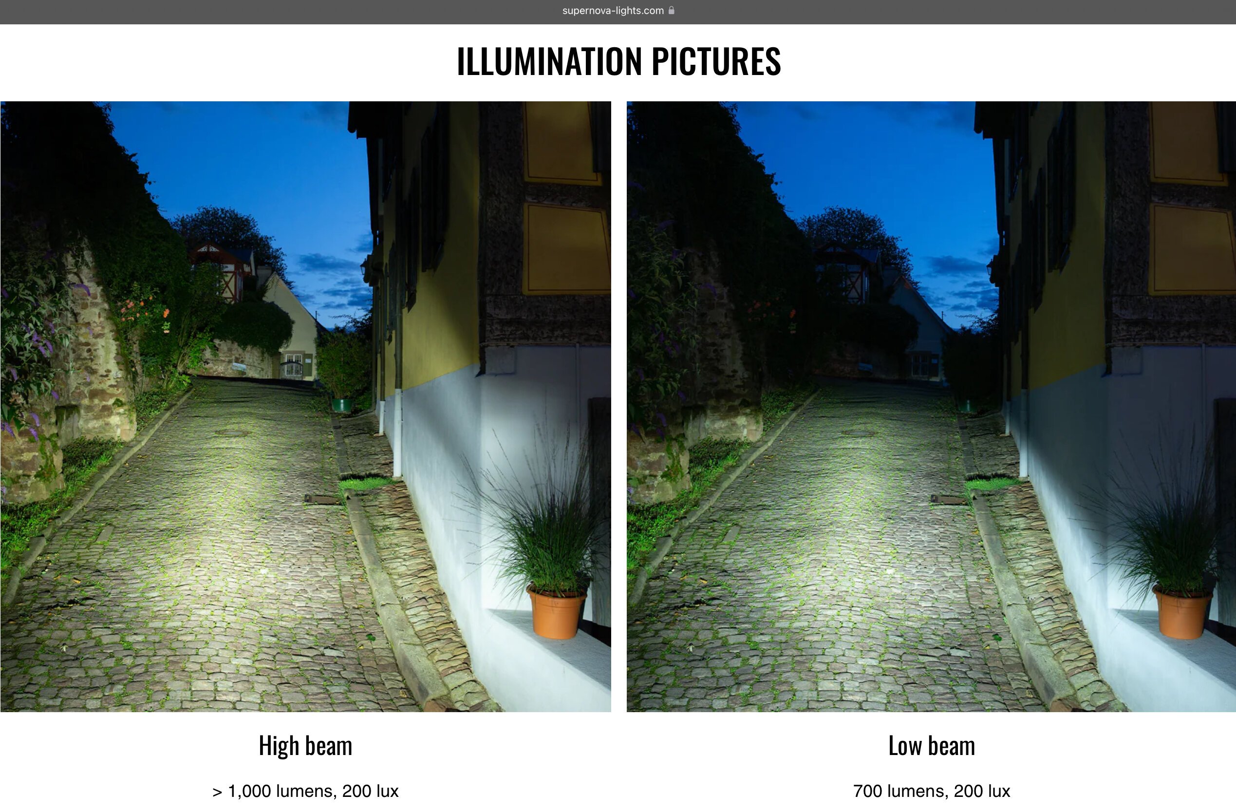 Mit dem neu gefertigten dynamobetriebenen Laufrad musste ich herausfinden, welche Leuchten ich verwenden und wie ich diese an den Nabendynamo anschließen würde. Ich habe einige wirklich gute Erfahrungen mit den Supernova Fahrradleuchten an meinem Pendlerrad gemacht. Sie sind ein typisches Beispiel dafür, was passiert, wenn man Deutsche Technologie entwickeln und konstruieren lässt: Sie gehen bis zum Äußersten! Ihr neuestes Modell, die M99 DY PRO, verfügt über eine Matrix aus 11 LEDs und eine neue Steuerelektronik, die eine Fernlichtfunktion ermöglicht. Sie erzeugt Lichtwerte von bis zu 1.000 Lumen und 200 Lux. Das nenne ich mal Licht! HA! Ich liebe das wirklich.