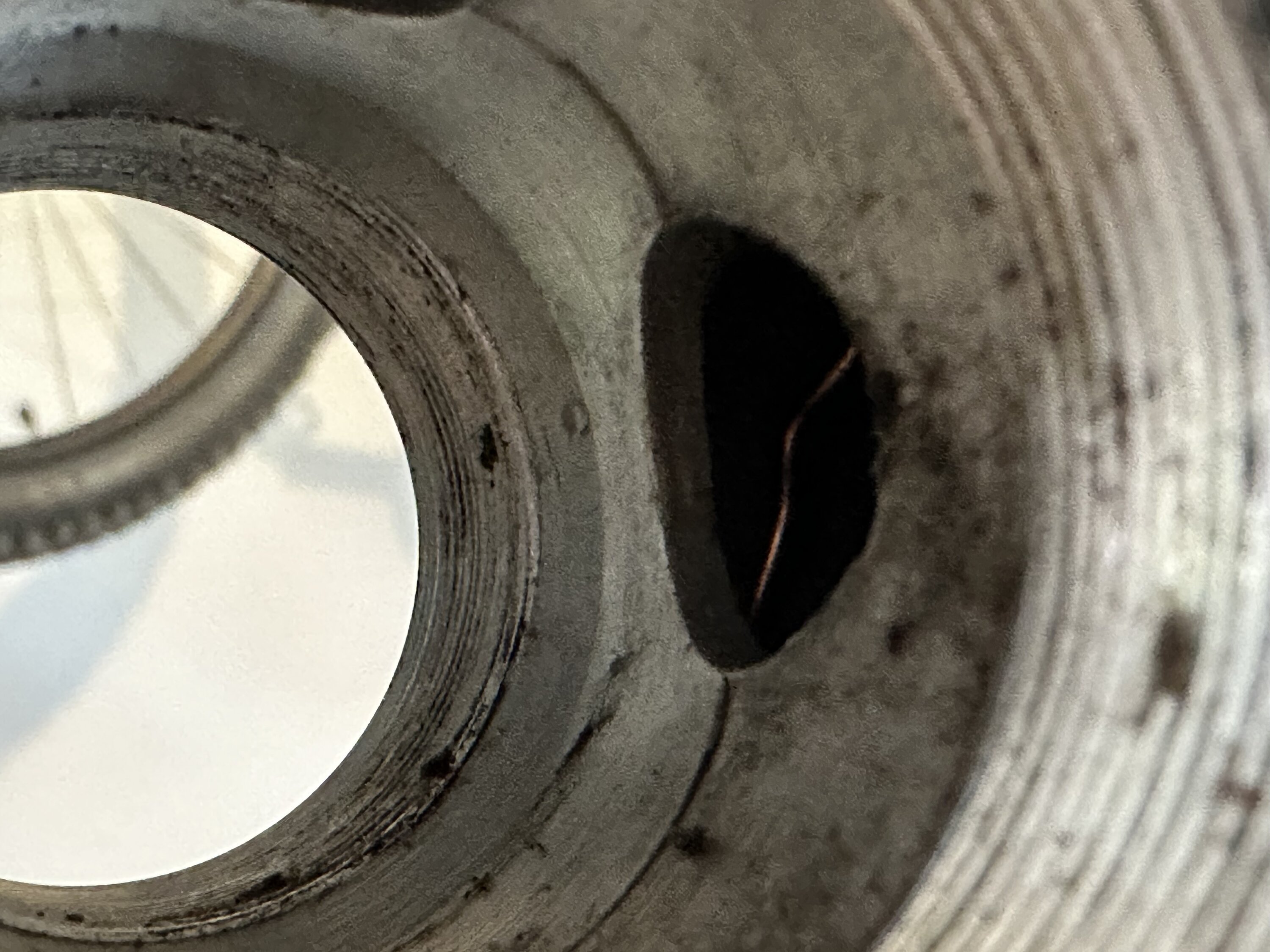 Mein Fahrrad hat aerodynamisch geformte Rohre, die nicht perfekt rund sind, so dass in der Nähe des Tretlagers etwas vertikaler Platz bleibt, den ich für ausreichend hielt, damit ein elektrisches Kabel hindurchpasst. Letztendlich musste ich mein Tretlager, die Kurbelwelle und die Pedale entfernen, um an die Löcher im Inneren meines Fahrradrahmens zu gelangen.