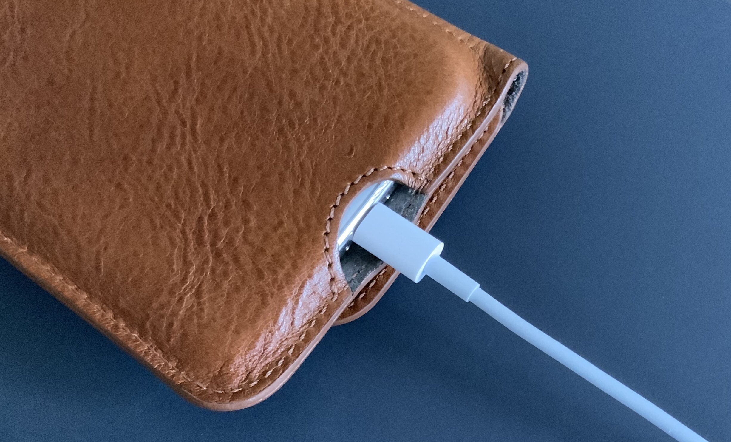 The great thing about this Hardgraft iPad Pro case is that it fits the entire iPad with the keyboard folio and pencil attached. Just like the iPhone wallet, there is a clever hole in the sleeve that allows charging.