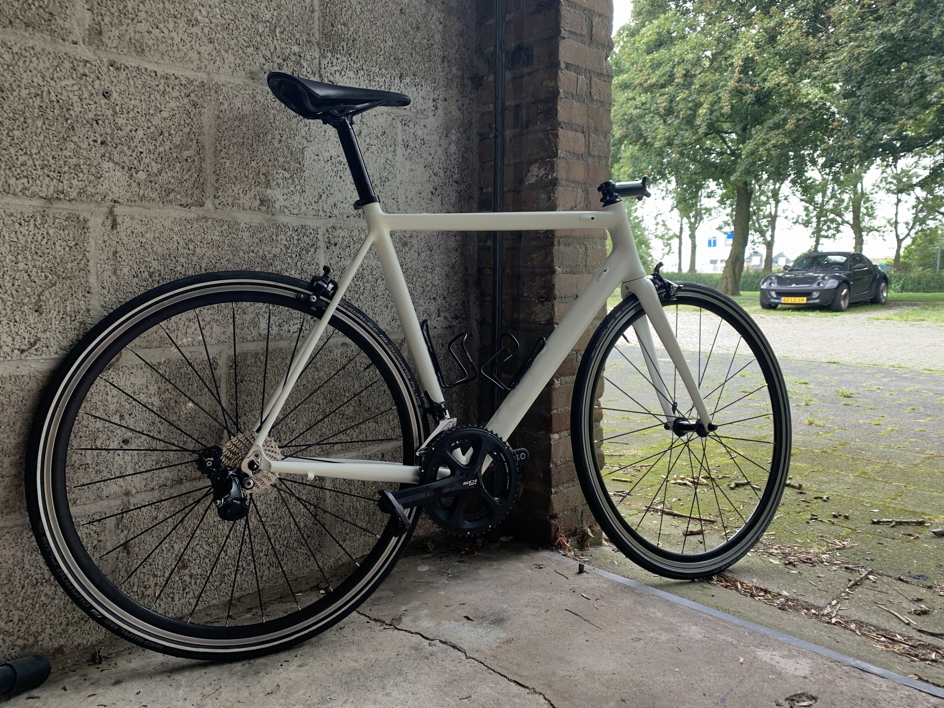 Over the past months I have worked on different bikes, leading to an accumulation of spare parts in my garage. I wondered how hard it would be to make a new bike using these spare parts. I decided to take advantage of this moment to refinish some parts, removing excessive decals in order to create a minimal looking road bike.