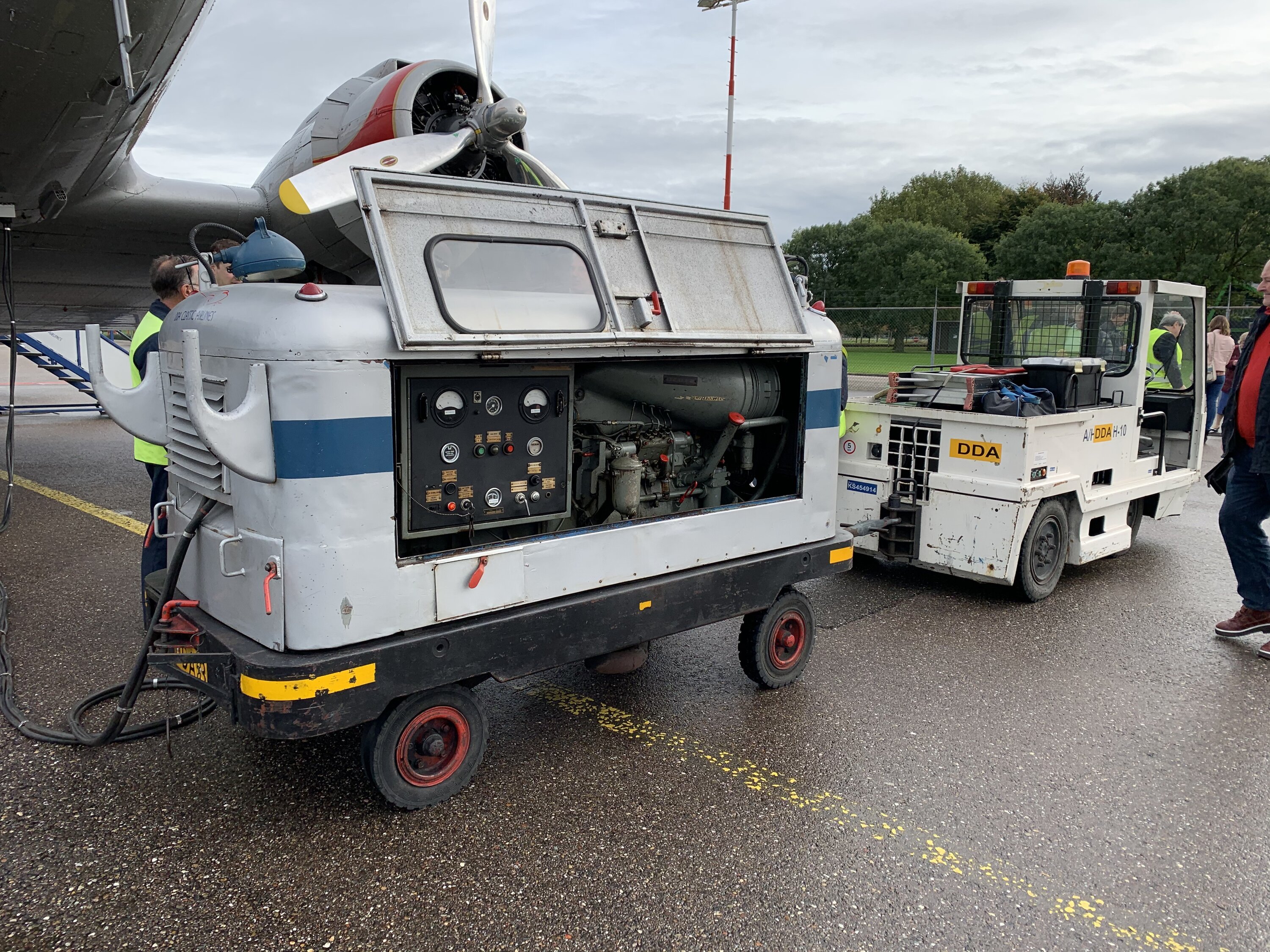 Although the C47-A is capable of starting its own engines, the PH-PBA is usually started using a generator. As history is full of sweet irony, it's a German built, Deutz diesel powered electrical generator. It's really cool to see this old tech still working fine; it's a welcome contrast to many of the modern day planned obsolescence.