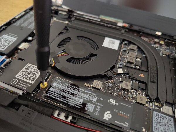 The 8TB SSD is secured with a single screw