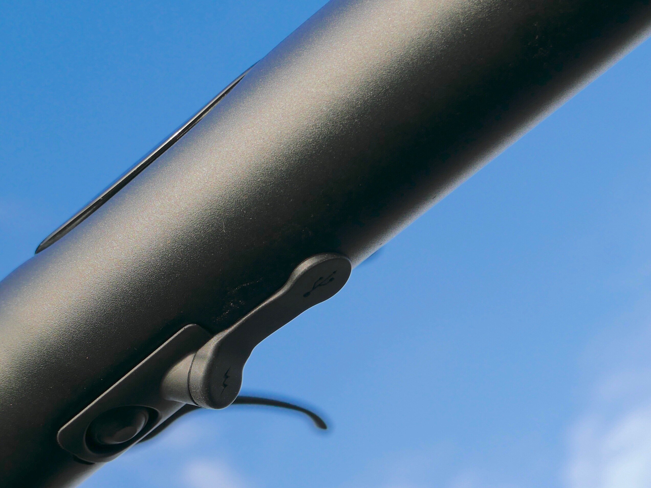 Debido a que la pantalla está integrada en el cuadro, está mejor protegida contra golpes con otras bicicletas al estacionar la bicicleta en algún lugar de la ciudad. Justo debajo de la pantalla táctil encontrarás el conector de carga y un botón para encender o apagar la bicicleta manualmente.