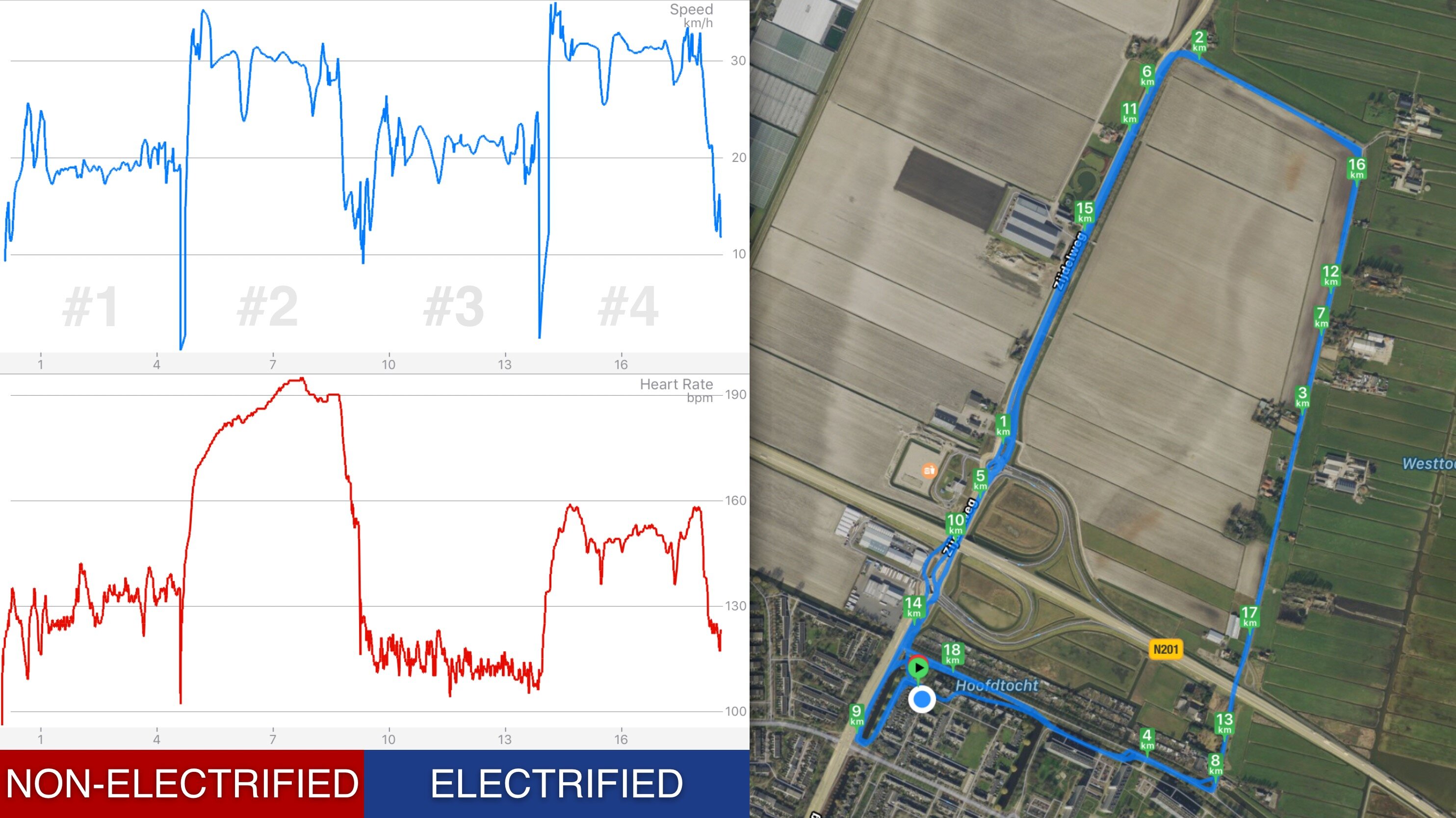 Decidí averiguar cuánto menos esfuerzo tenía que hacer mi cuerpo al conducir la bicicleta eléctrica. Para averiguarlo, decidí comparar la Electrified S con una bicicleta normal, otra VanMoof similar, pero sin motor eléctrico.