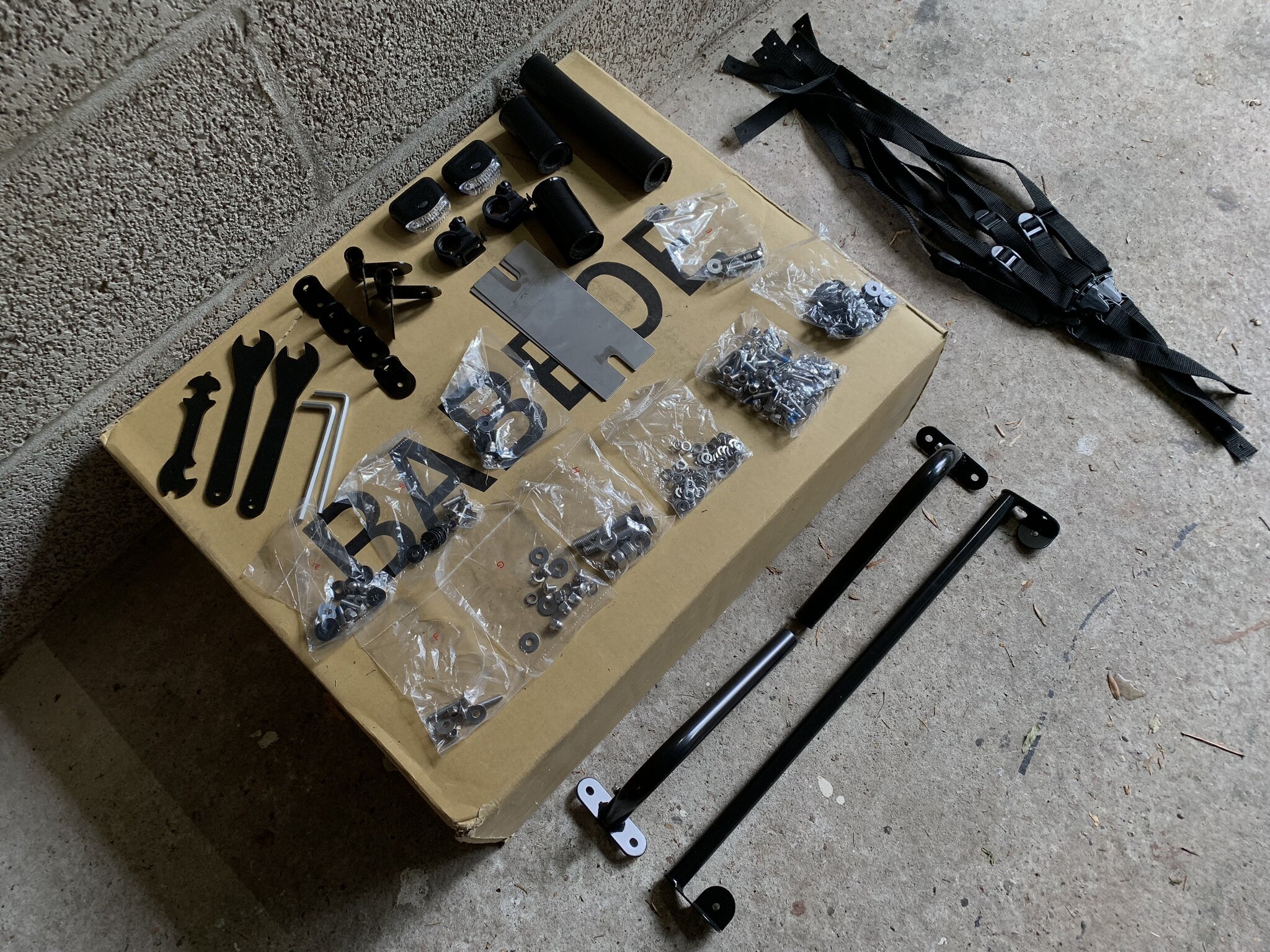 Una vez que hayas desempacado todas las cajas, tendrás una buena idea de cuánto trabajo implica realmente montar la bicicleta. A diferencia de una bicicleta de carretera moderna, esta bicicleta de carga tiene una cantidad increíble de tuercas y tornillos individuales. Además, cada conexión individual de tuerca+tornillo requerirá dos, tres o incluso cuatro arandelas. Elegir la combinación correcta, cada vez, lleva mucho tiempo (¡y vale la pena prestarle atención!).