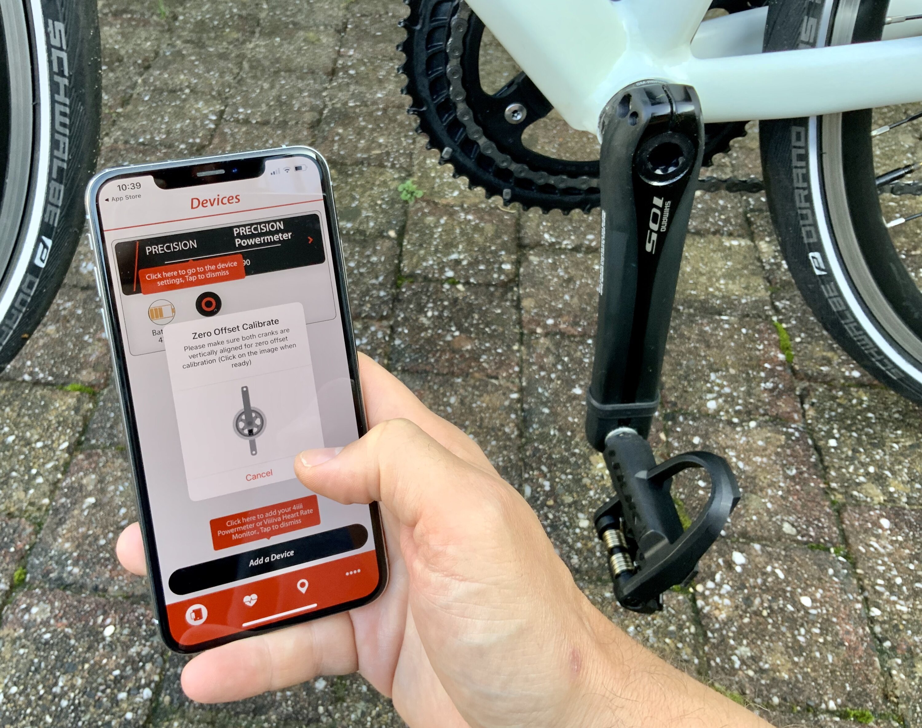 Una vez que haya conectado y actualizado el medidor de potencia, debe calibrarlo. Esto le permitirá detectar su 'valor cero' realizando una medición en posición vertical. La aplicación lo guiará a través de esto, la calibración tardará unos momentos. Una vez calibrado, puede utilizar el medidor de potencia en cualquiera de sus aplicaciones favoritas, incluidas Strava y Cyclemeter.
