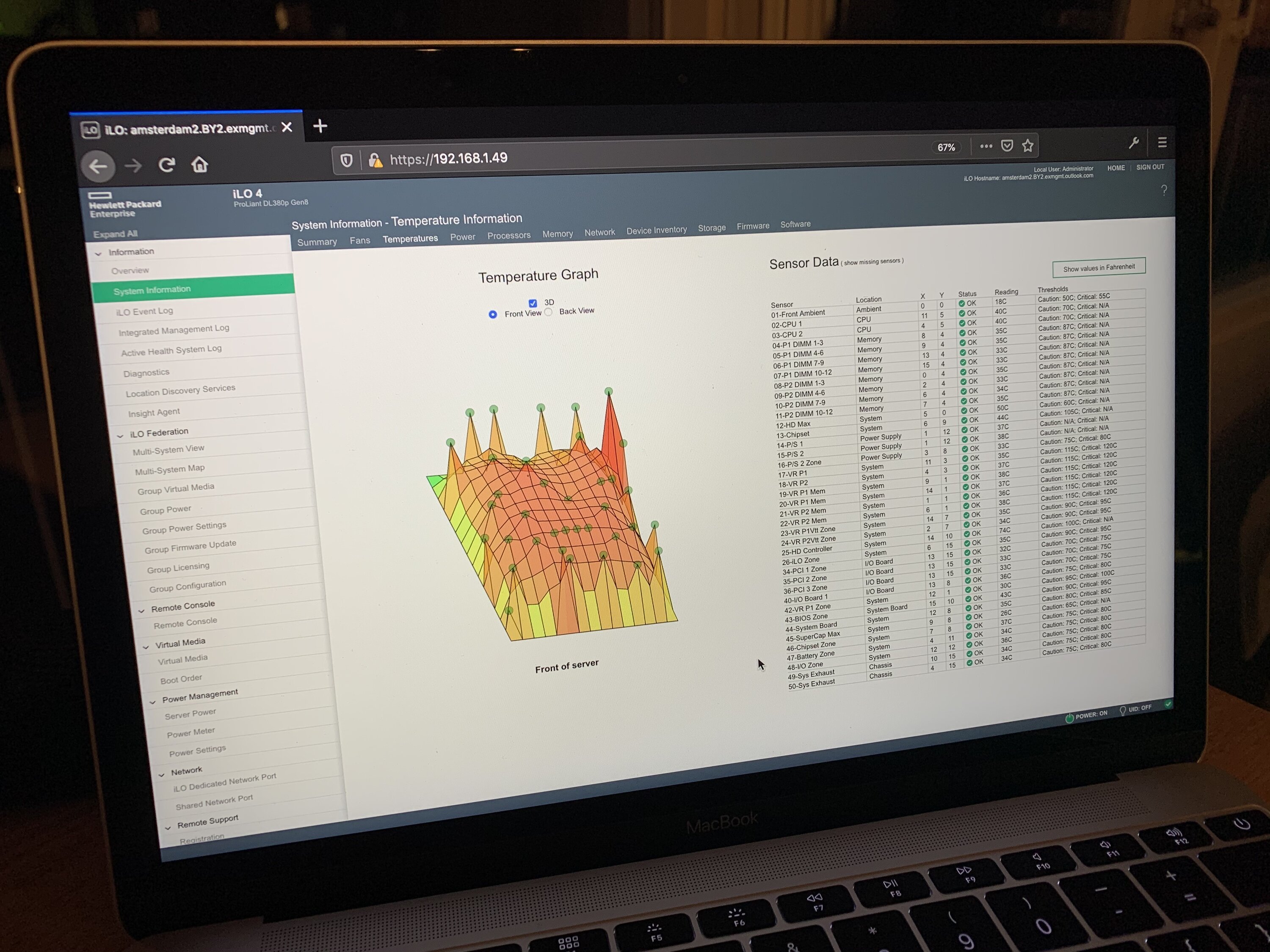 El MacBook está conectado al servidor a través del iLO de HPE. Le permite actuar como monitor y teclado. Esto hace posible controlar la instalación desde mi escritorio (en lugar de estar de pie junto al ruidoso servidor).