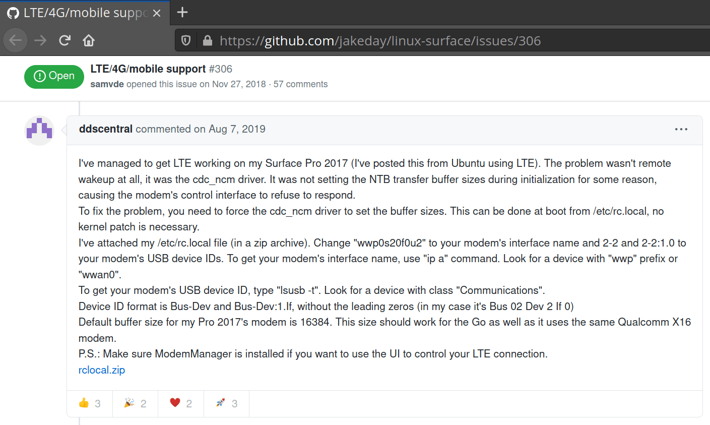 Cuando buscaba una pista para que 4G/LTE funcionara, busqué informes sobre Surface Pro. La Surface Go 2 es técnicamente muy similar a la Pro más grande. Pensé que podría aprender de los esfuerzos de las personas con banda ancha móvil en la Surface Pro. Después de muchas horas de búsqueda y probando diferentes cosas, encontré esta solución para hacer que 4G funcione en Surface: