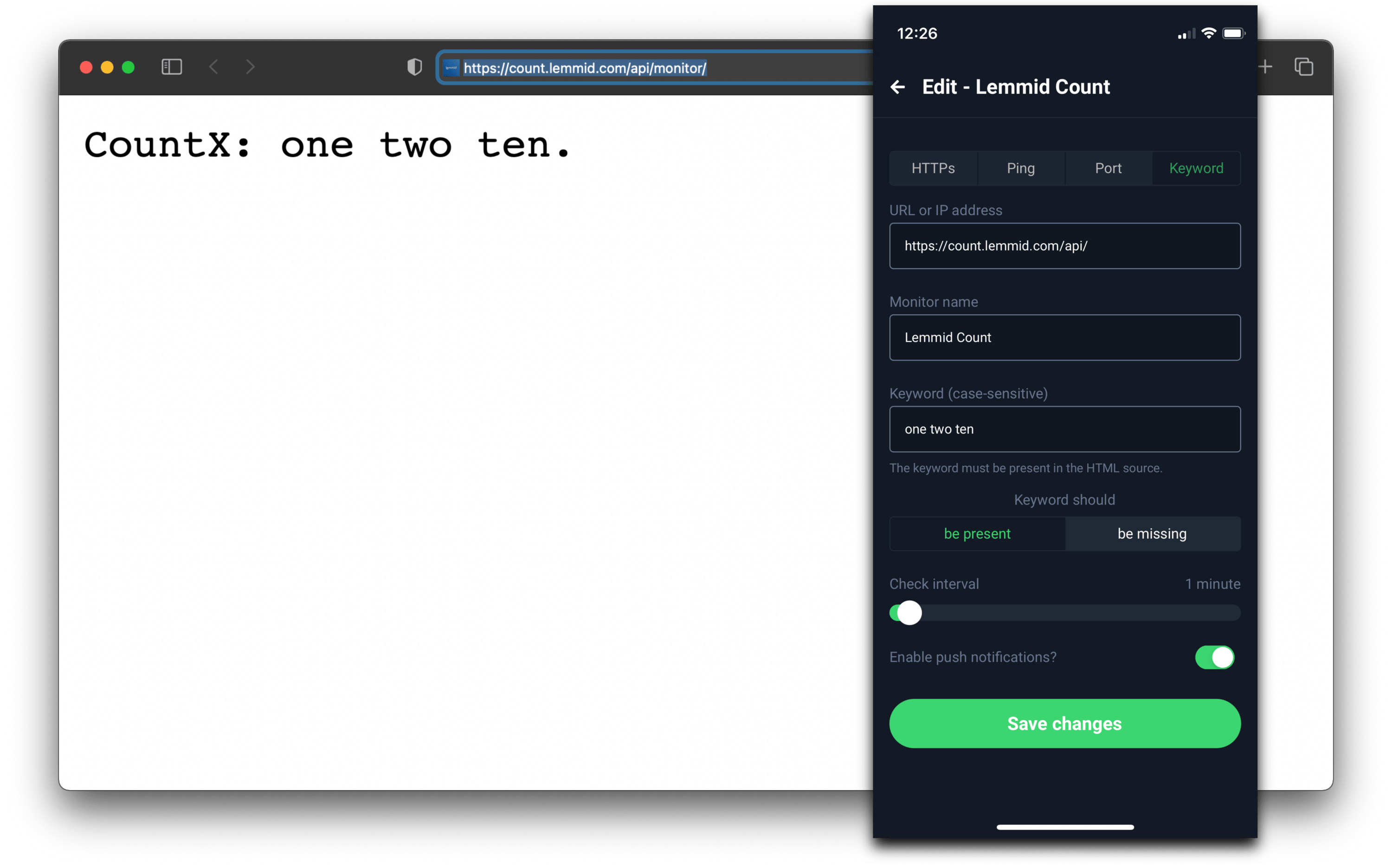 Una forma más refinada de monitorear tus servicios es tener múltiples comprobaciones que toquen diferentes partes de tu infraestructura. Por ejemplo, puedes configurar el monitoreo del tiempo de actividad para realizar una función común. Esto detectará "problemas más profundos" que podrían no detectarse si simplemente estuvieras comprobando si un servidor está en línea. Entonces no solo estás comprobando "¿está ahí?", sino también "¿está funcionando correctamente?".