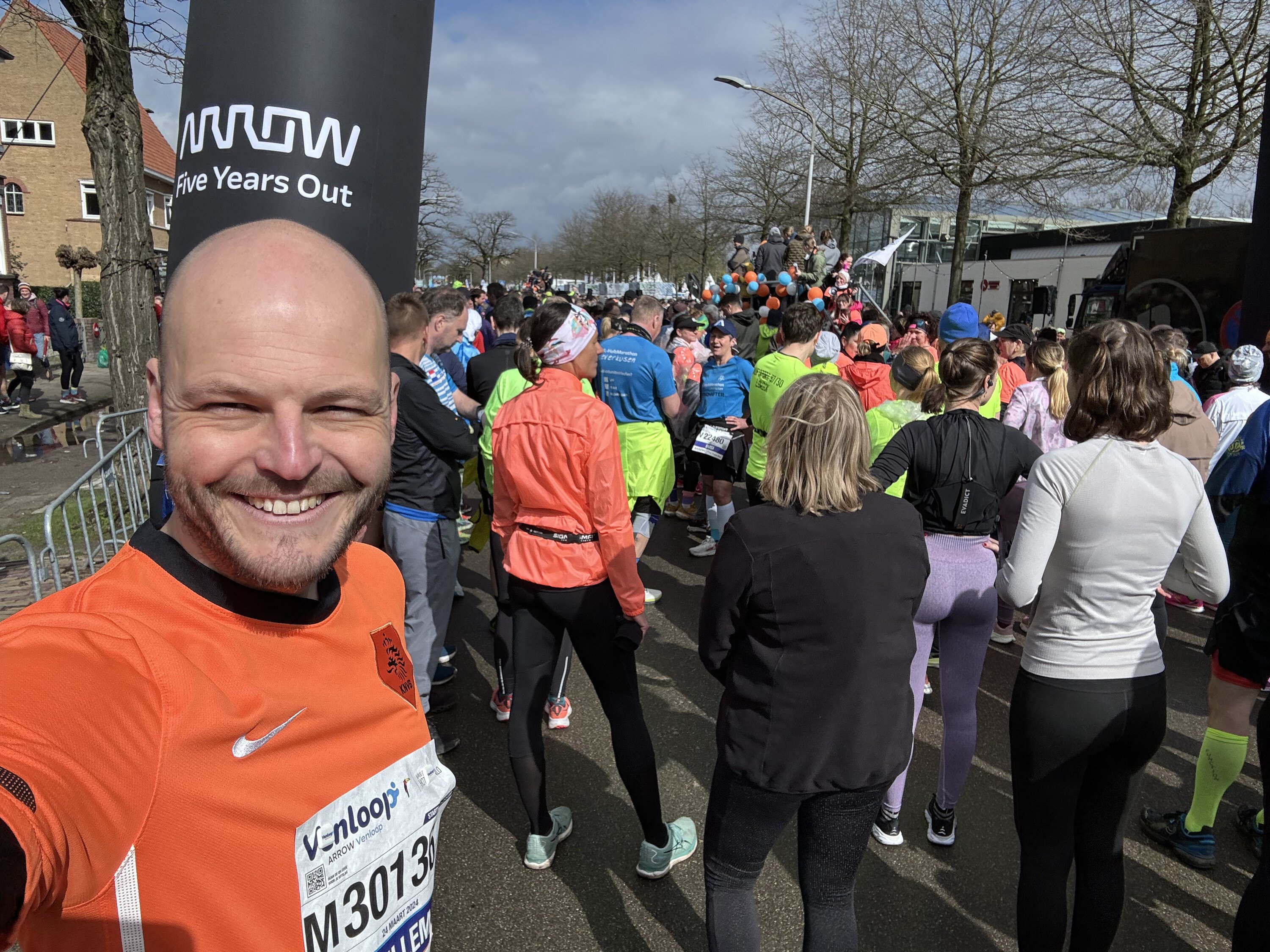 Participé en el Venloop, un evento local en Venlo que atrae a grandes multitudes. Es emocionante cuando los espectadores te animan por tu nombre, realmente aumenta tu moral. Me encantó la experiencia; es como una "droga feliz" que te energiza intensamente.