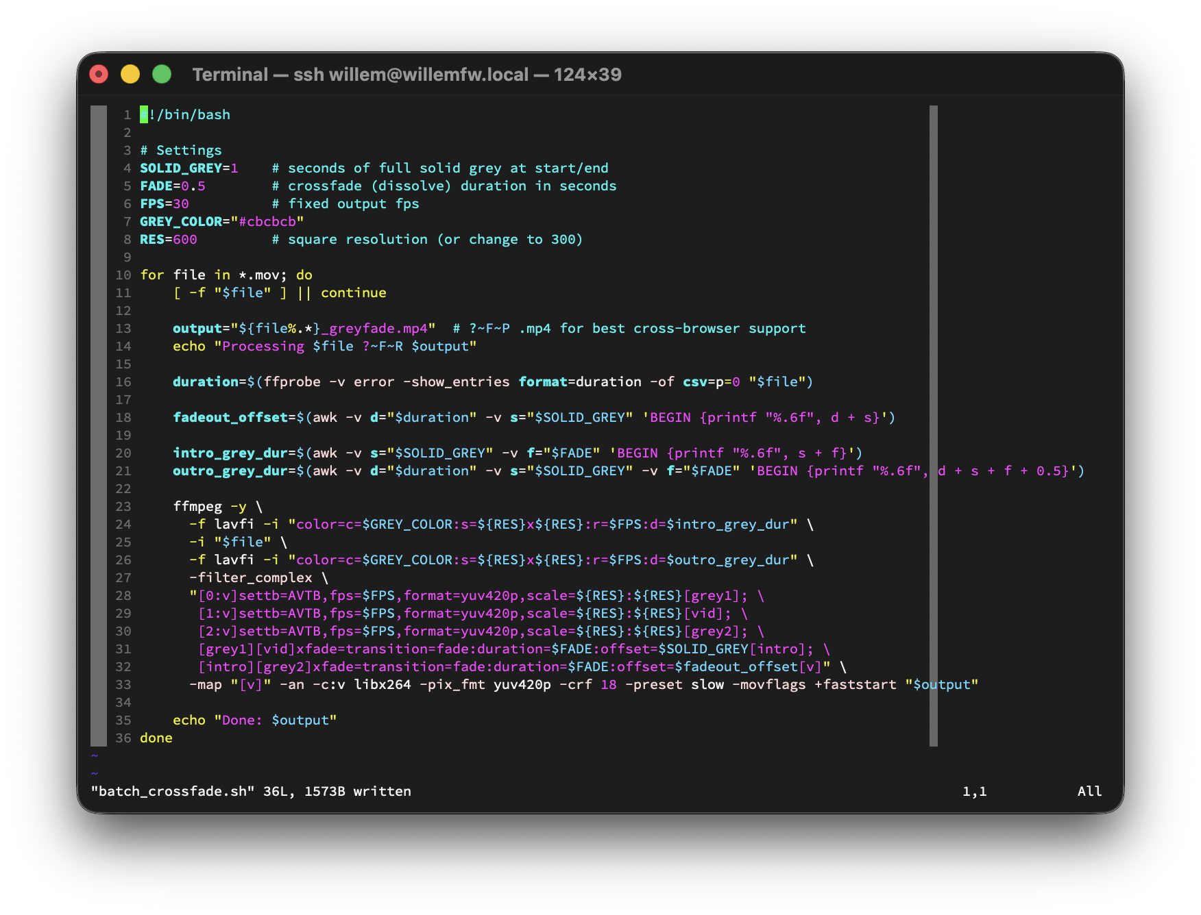 - recorte a cuadrado: no tiene sentido cargar píxeles que no se ven – el vídeo cuadrado es suficiente para llenar mi marco redondo objetivo.