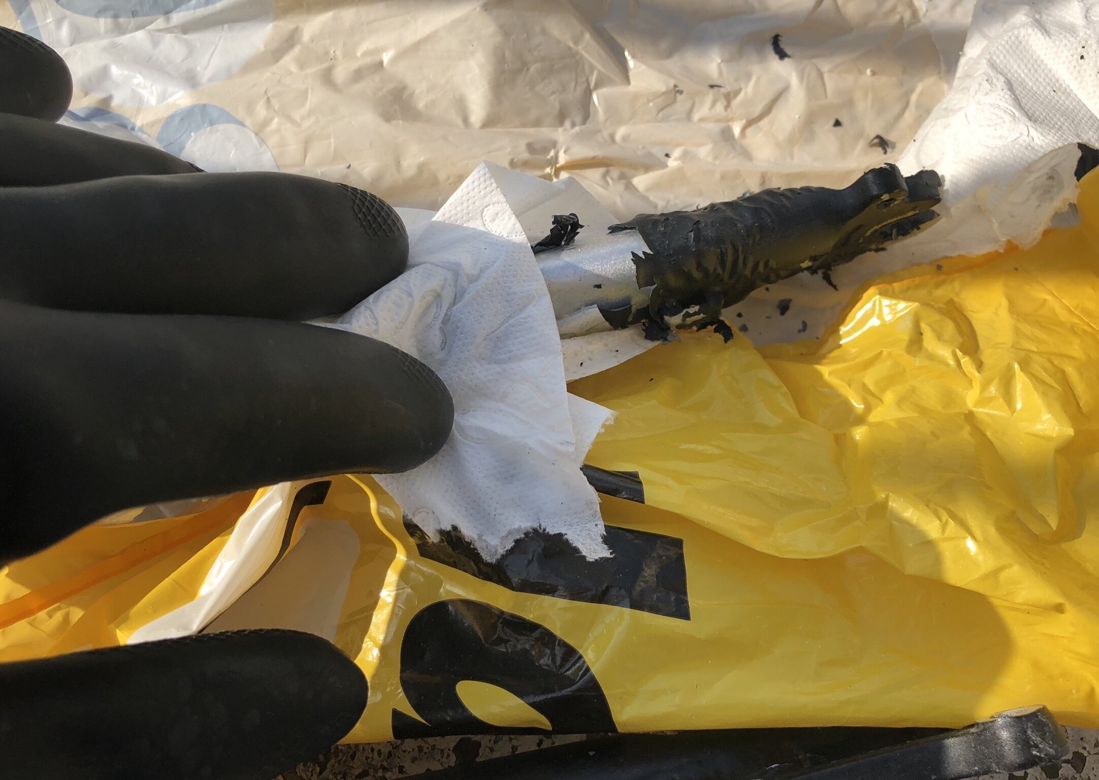 El decapante químico es el método más efectivo para cuadros de acero. Aplicar capa gruesa, envolver en plástico, esperar 4-8 horas.