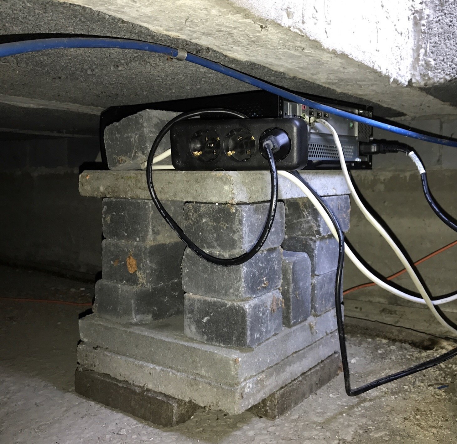 Idealiter wilde ik de hardware uit het zicht hebben, dus ging ik in huis op zoek naar een geschikte plek. Computerhardware werkt het beste in droge en koele omgevingen. Ik bedacht me dat de ruimte onder mijn huis aan deze voorwaarden voldeed.
