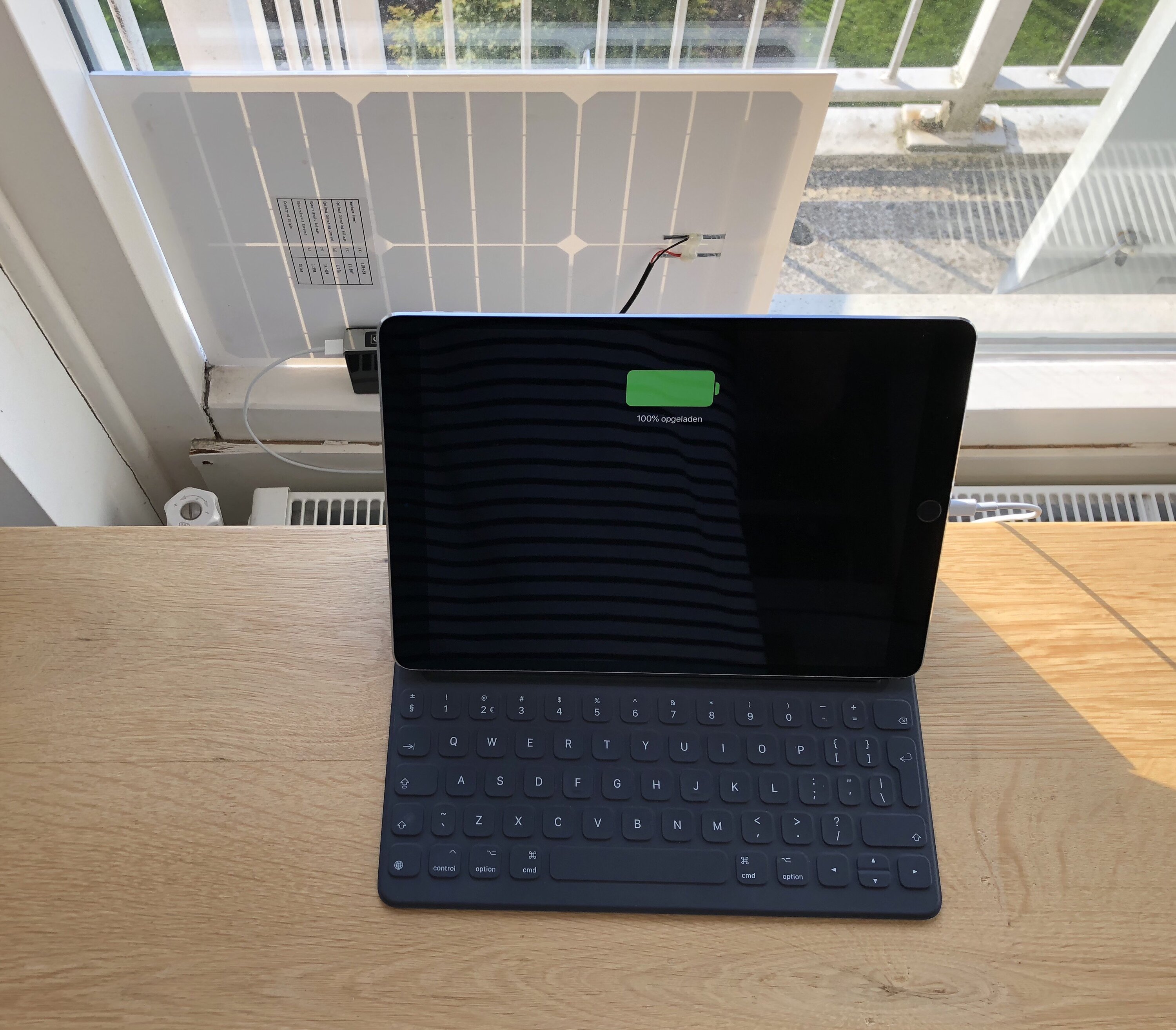 Dit werkte, maar het opladen van mijn apparaten ging opvallend langzaam. Ik vermoedde dat zowel de hoek (90º) als de positie achter dubbel glas ervoor zorgden dat de prestaties suboptimaal waren.