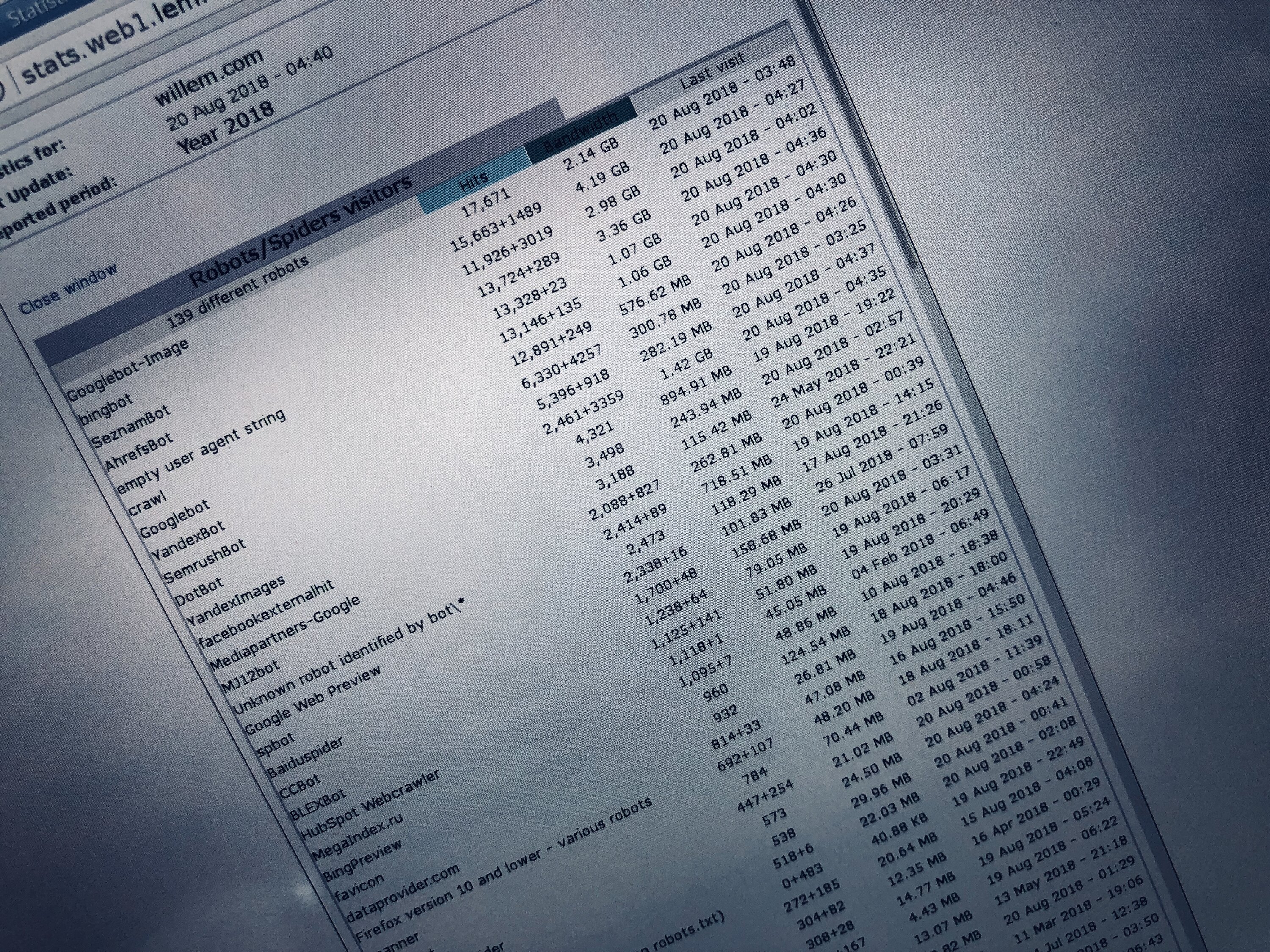 Deze geautomatiseerde verzoeken worden gedaan door bots, computerprogramma's die automatisch op het web surfen. Vaak hebben deze bots een specifieke taak, zoals het indexeren van een website voor zoekmachinevermelding. De meeste bots worden geïdentificeerd door hun oorspronkelijke IP-adres of zogenaamde UserAgent (een soort identificatietekst die de oorsprong van de bot aangeeft; zoals "GoogleBot"). De meeste bots zijn niet opgenomen in AWStats-bezoeken, maar worden vermeld in een aparte lijst.