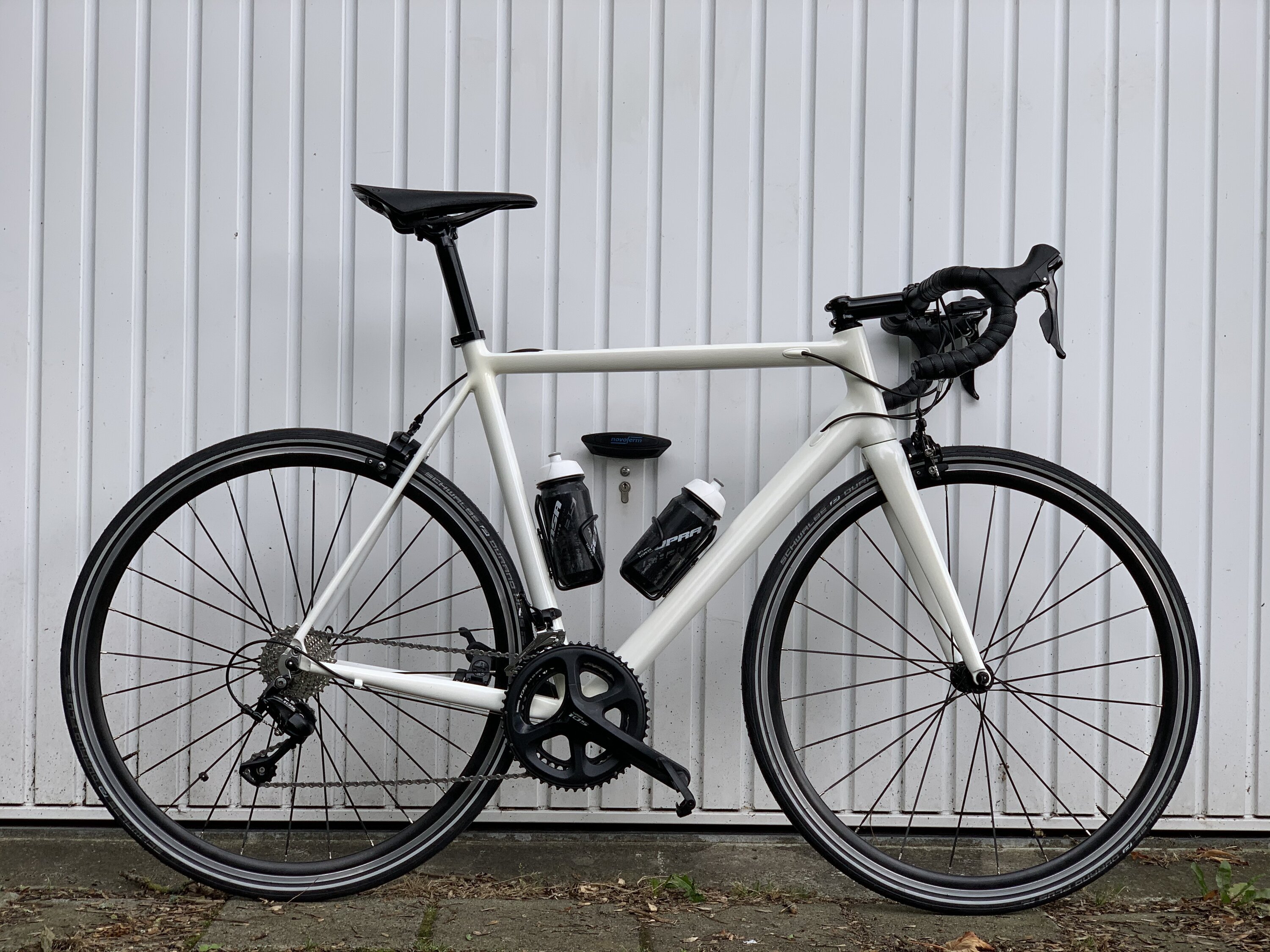 De afgelopen maanden heb ik aan verschillende fietsen gewerkt, wat heeft geleid tot een opeenstapeling van reserveonderdelen in mijn garage. Ik vroeg me af hoe moeilijk het zou zijn om een nieuwe fiets te maken met deze reserveonderdelen. Ik besloot om van dit moment gebruik te maken om wat onderdelen opnieuw af te werken, waarbij ik overtollige stickers verwijderde om een minimalistische racefiets te creëren.