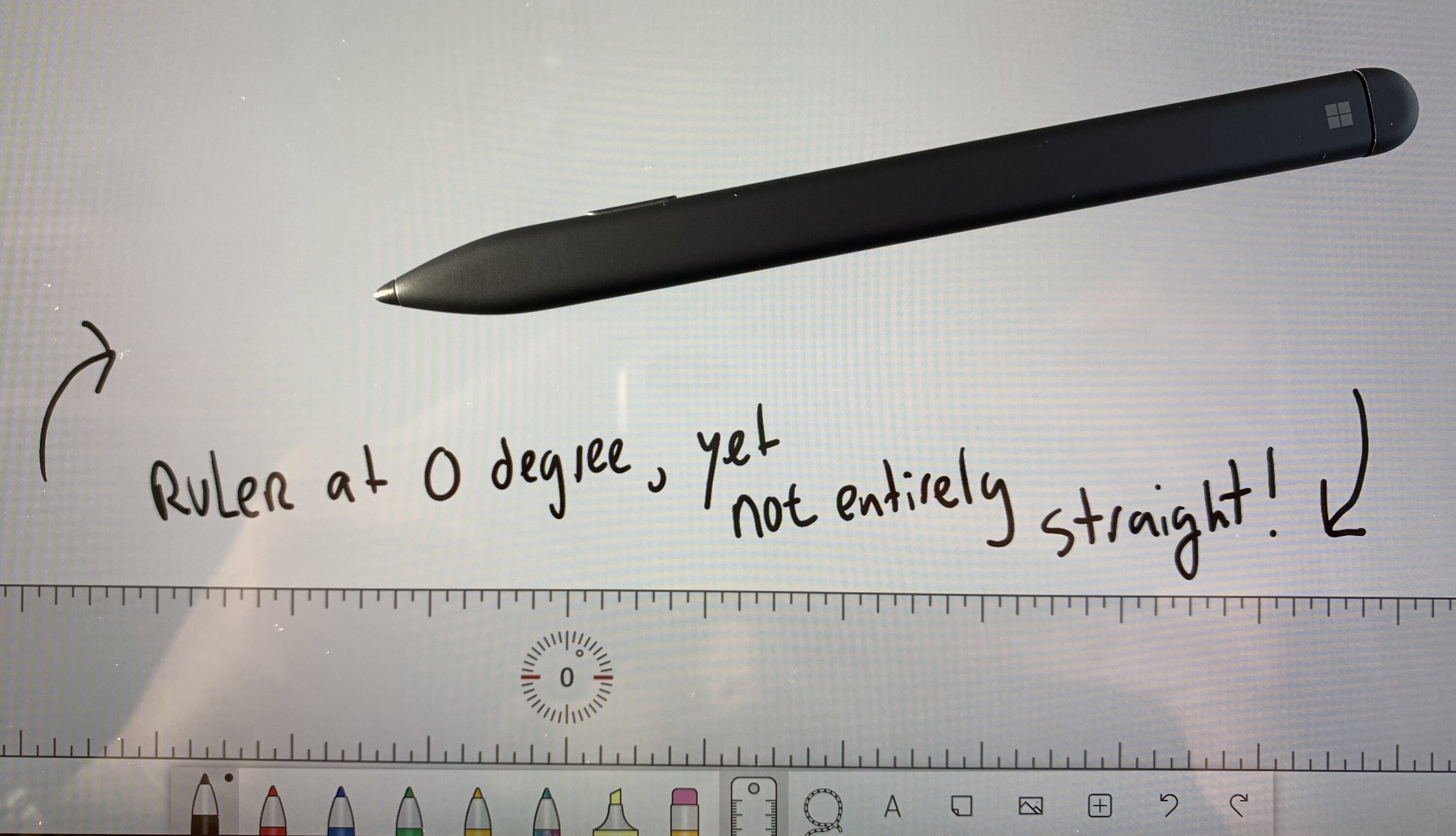 Ondanks dat hij een beetje licht is, functioneert hij perfect, want de reactiesnelheid van de pen is gewoon geweldig. Microsoft biedt verschillende apps voor het maken van notities en schetsen, zoals Microsoft OneNote en Whiteboard. Ik vind de laatste leuk, maar hij is niet zonder gebreken, want vervelende bugs zoals een onnauwkeurige liniaal belemmeren de superkrachten van de Surface Pen.