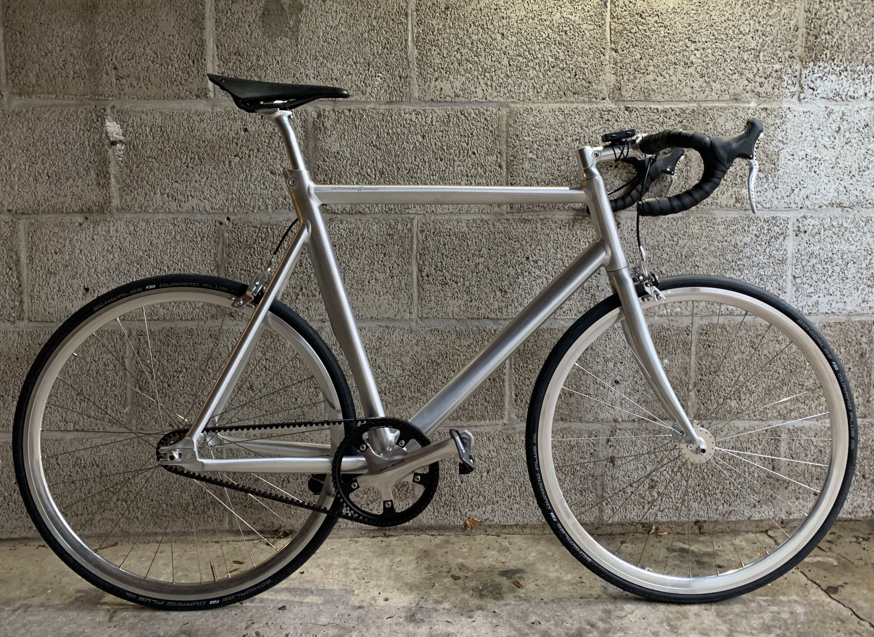 Hoewel mijn woon-werk fiets nog steeds sterk is, vroeg ik me af hoe het zou zijn als je een racefiets zou ontwerpen met de Gates Carbon Belt Drive. Schindelhauer ontwierp zo'n fiets, de Siegfried Road.
