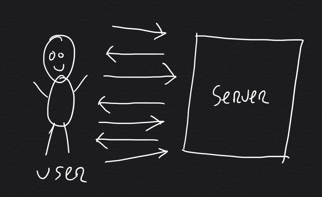 In dit vroege en kleine scenario kan de enkele server waarop de app draait, de interactie van de gebruiker aan. Elke keer dat de gebruiker op een knop tikt of klikt, doet de enkele server wat werk. Als je goed programmeert, kunnen deze workloads worden geoptimaliseerd tot efficiënte stukjes werk. Dit doen is een typisch voorbeeld van een monolithische software architectuur.
