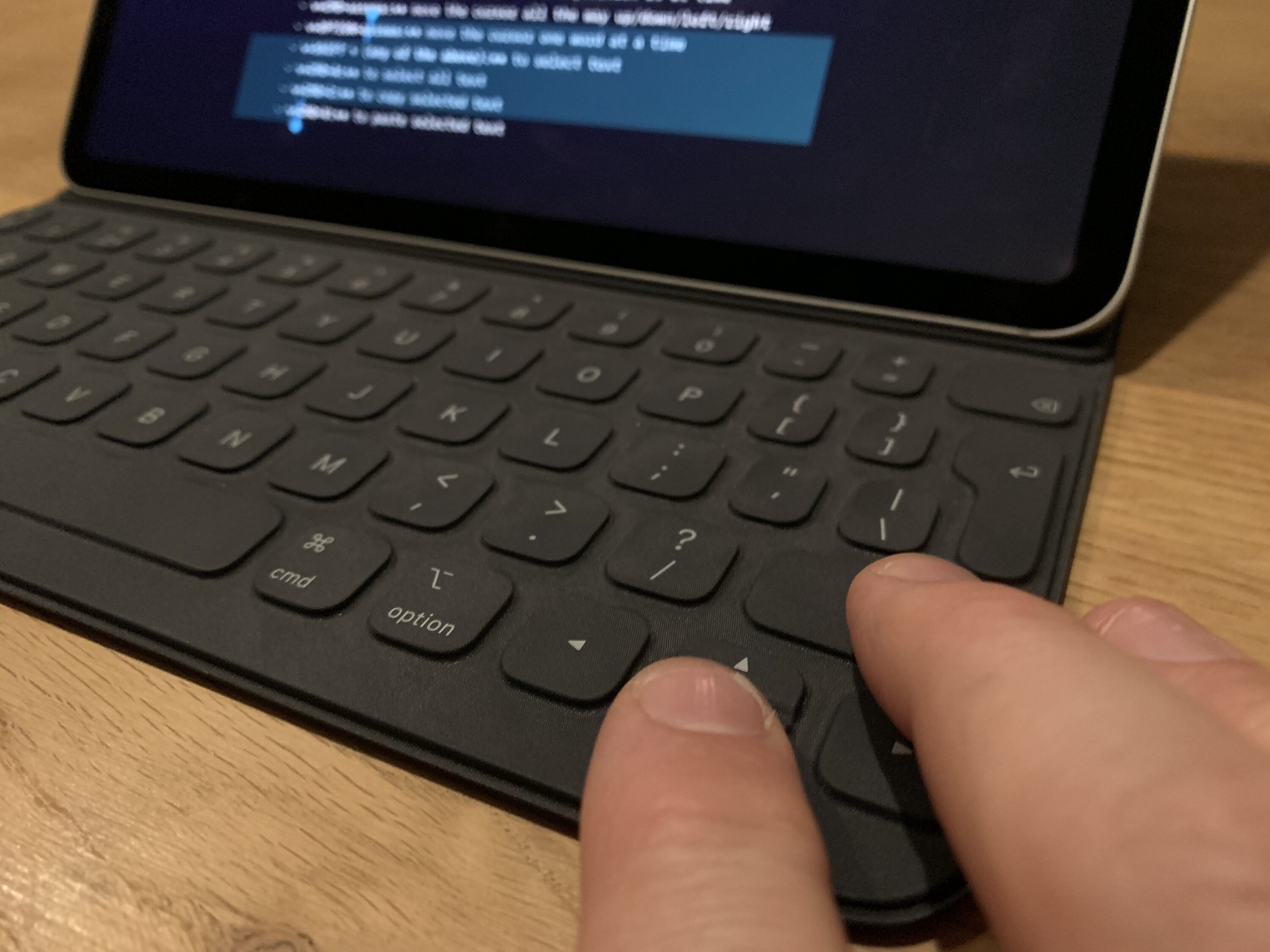 Ik zou iedereen aanraden om toetsenbordcombinaties te leren en te leren navigeren door tekst met behulp van het toetsenbord. In iPadOS heeft Apple het gemakkelijk gemaakt om toetsenbordcombinaties voor veelvoorkomende acties te leren. Houd de CMD-knop lang ingedrukt om een app-specifiek spiekbriefje met sneltoetsen te onthullen.