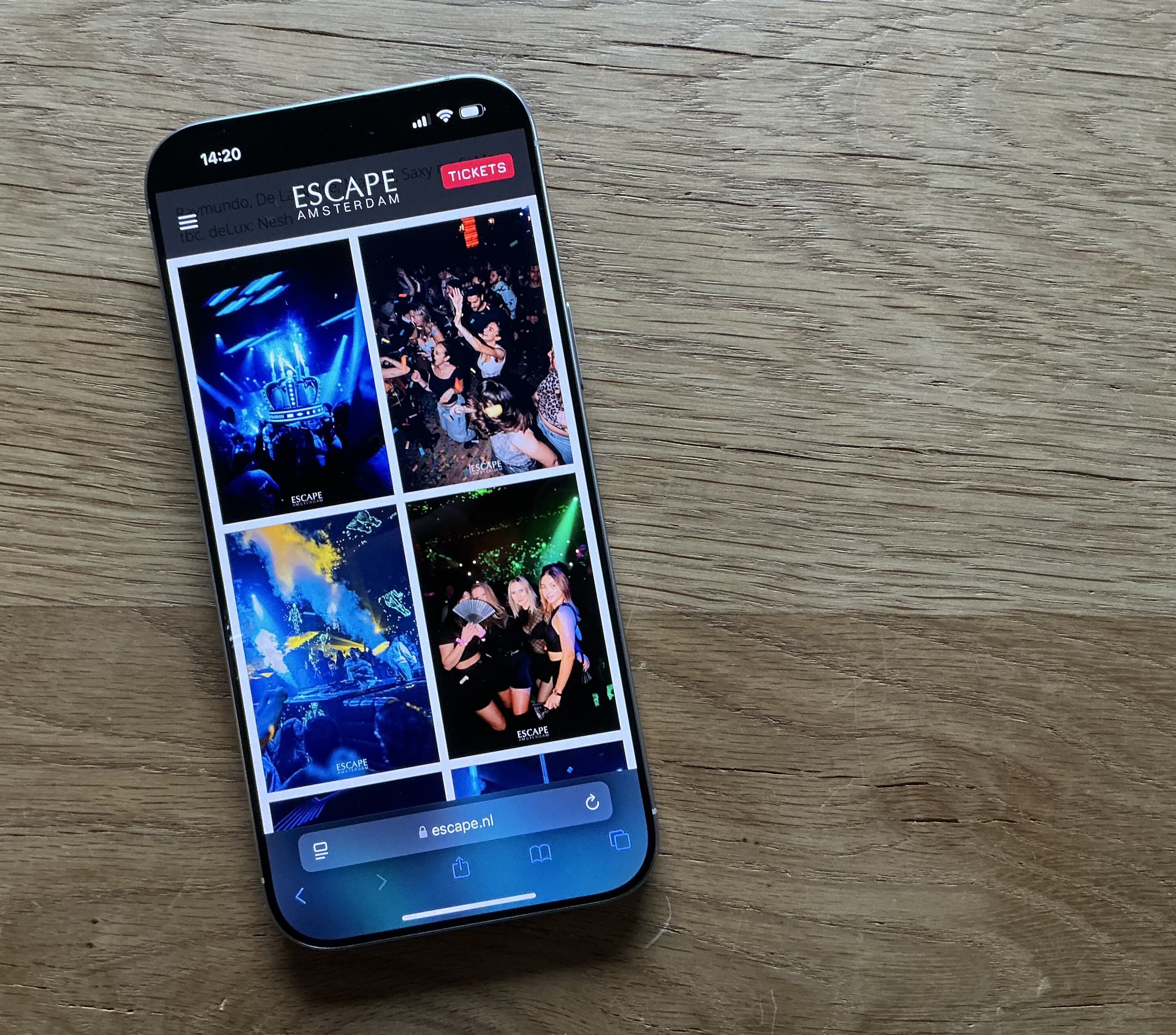 Elke keuze in het ontwerp van de site weerspiegelt een "minder maar beter" ethos, met minder knoppen, plugins en afhankelijkheden. Deze eenvoud verbetert de prestaties en richt de aandacht op de "commerciële trechter", zoals tickets en VIP-tafelverkoop, met duidelijke calls to action. Denken aan commercie is geen bijzaak; Escape.nl heeft niet eens een homepage, dus gasten landen direct op de clubagenda - een stap dichter bij een avondje uit zonder extra klikken.